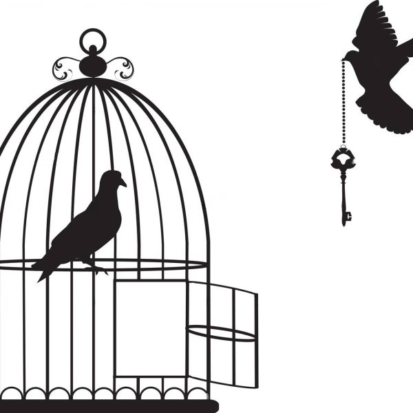 Wooden Bird Cage Open With Doves Flying With a Key Wall Stickers