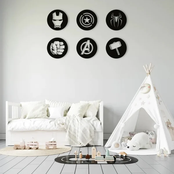 Avengers Metal Wall Art Set of 6 – Geometric Nursery Wall Decor – 3D Metal Superhero Wall Hanging