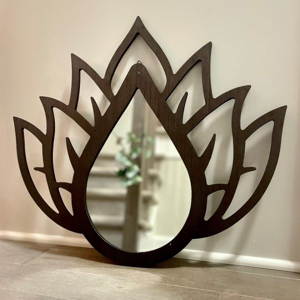 Bold Lotus Mirror | Floral Wooden Decor | Wooden Wall Mirror